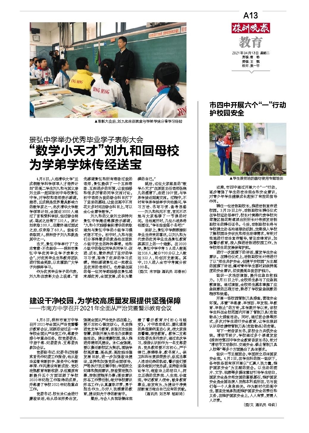 “数学小天才”刘九和回母校 为学弟学妹传经送宝
