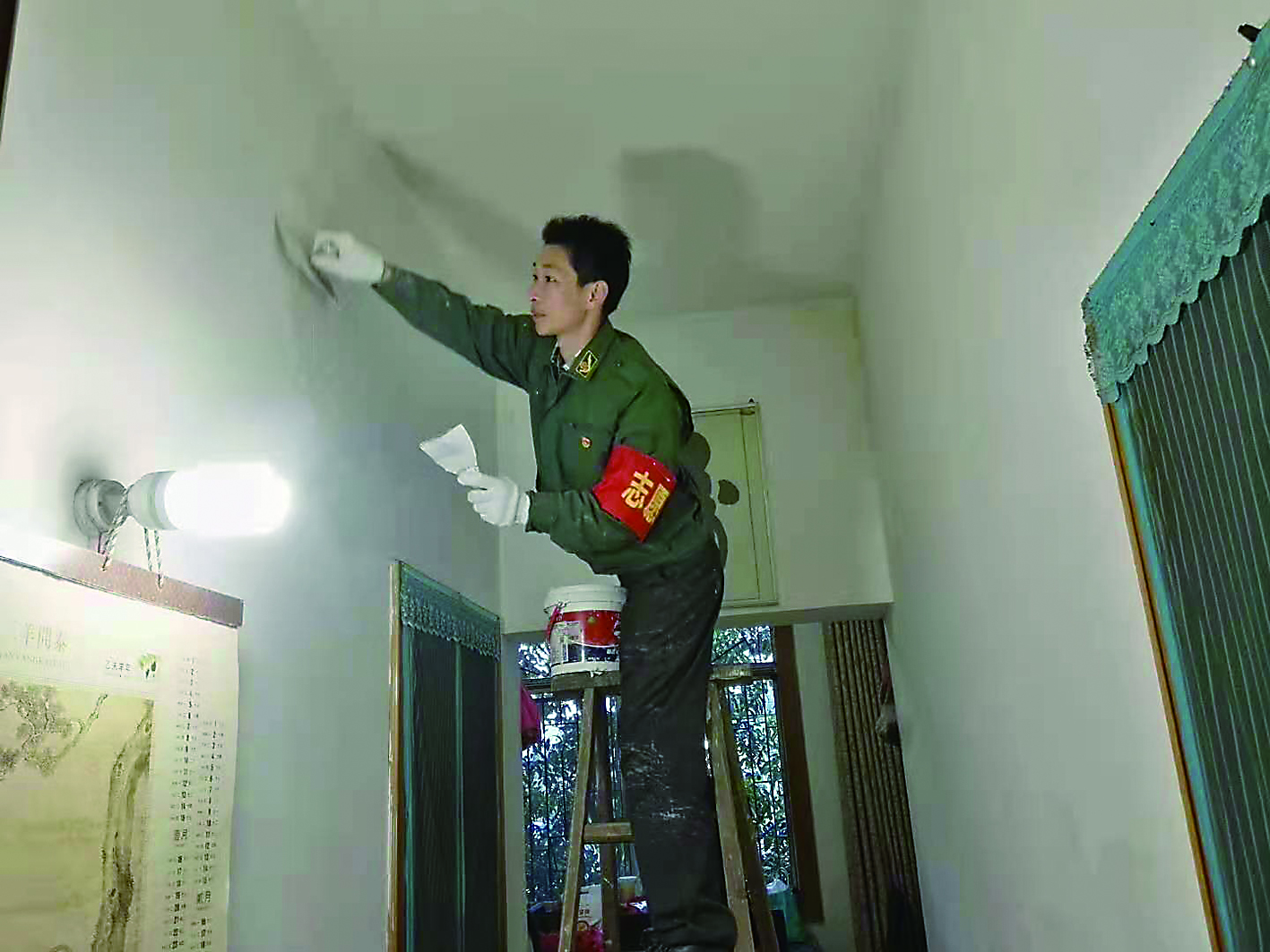 ▲蒋金龙义务帮受助对象粉刷墙壁 受访者供图