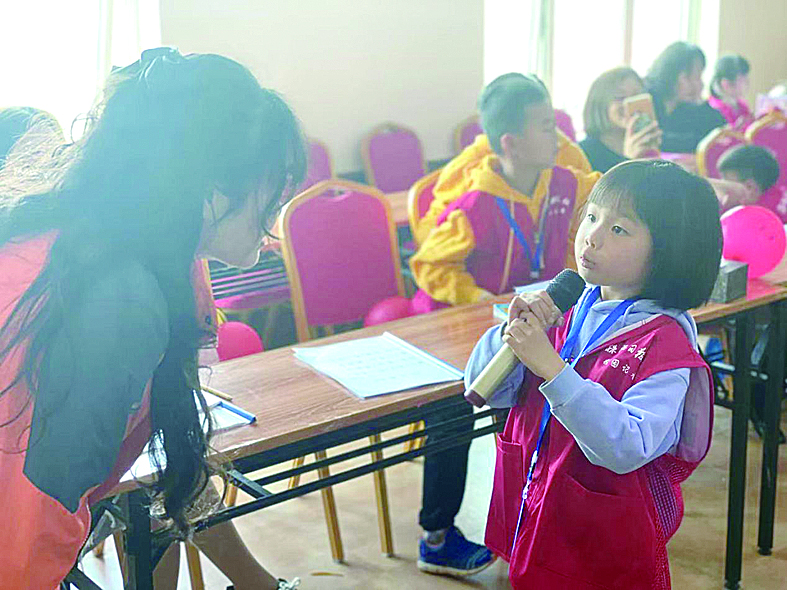 ▲一年级小学生,已经像模像样采访了 魏朋 摄