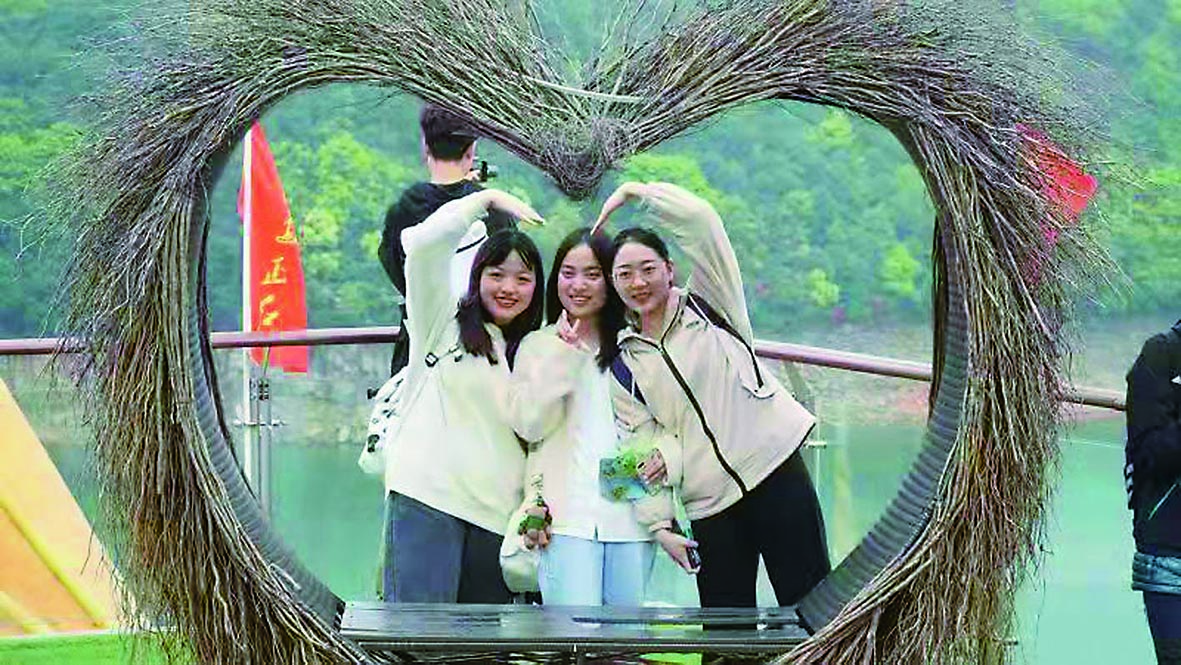 开“脑洞”、秀才艺、造热点……4月1日“策游潇湘‘营’出花YOUNG”湖南文旅推广活动走进酒仙湖景区。