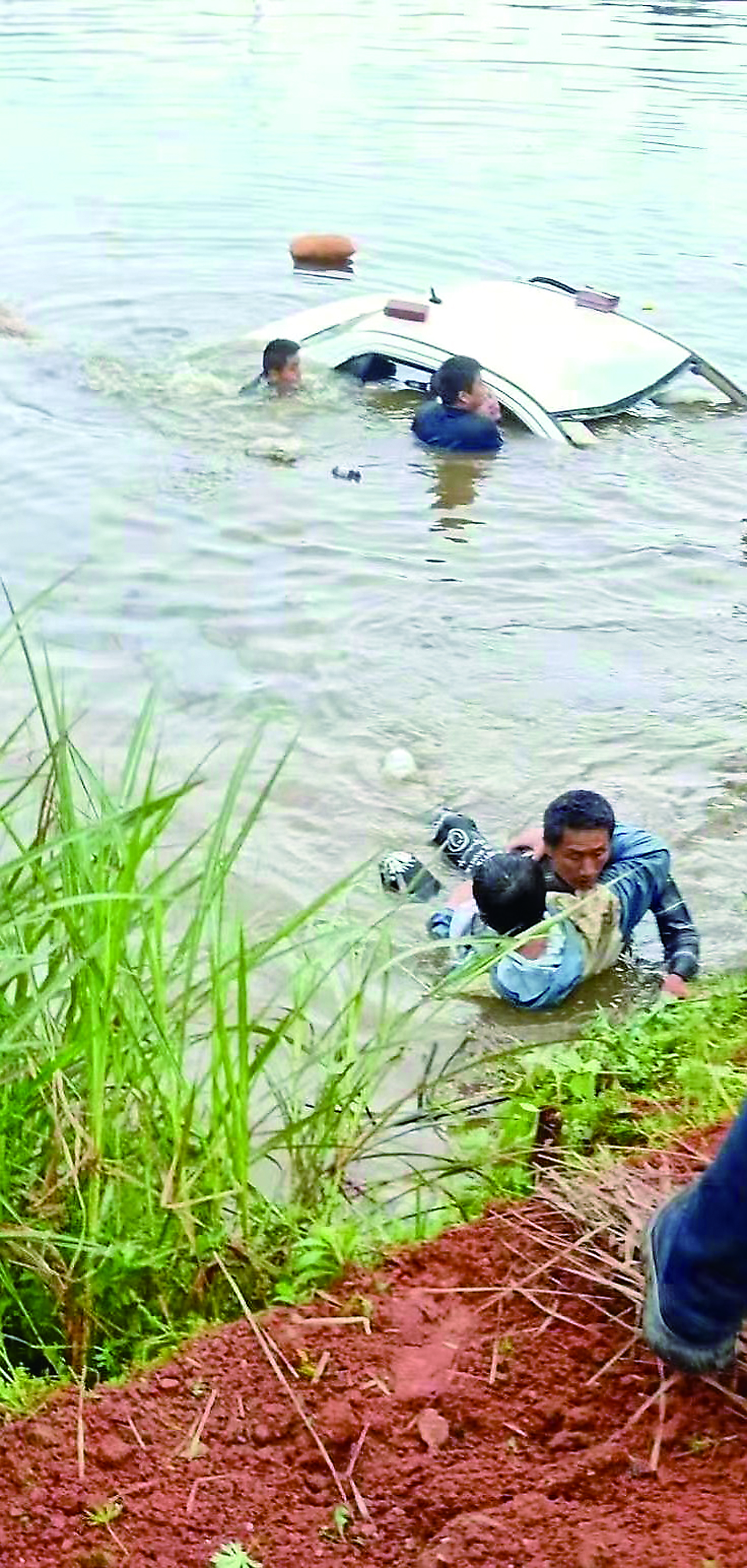 “情况紧急,什么都来不及想,一看到车辆沉在水里,我们就赶紧跳下水救人。”王天宝说,大伙把人救上后,他发现自己的手被玻璃划伤,手机因浸水无法开机,“只要车上的人没有事,这点不算什么。我想每个人遇到这种情况,都会像我们这样做的。”