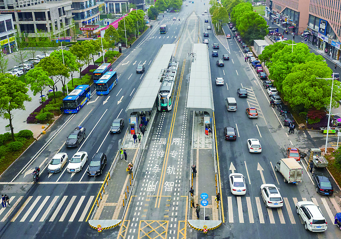 ▲3月30日,株洲公交快速廊道正式启用,智轨电车A2线同步进入试运营阶段。 记者 刘震 摄
