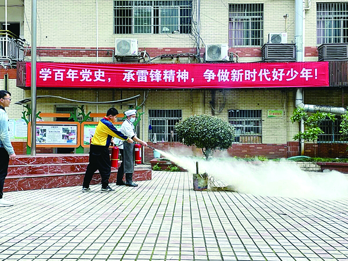 当日,伴随着急促的火警警报声,全校师生快速集结到学校操场,开展校园消防安全疏散演练。具体演练内容包括:熟知火警警报、教学楼突遇火灾等安全事故时的全体学生安全疏散、消防知识培训和现场灭火演示。