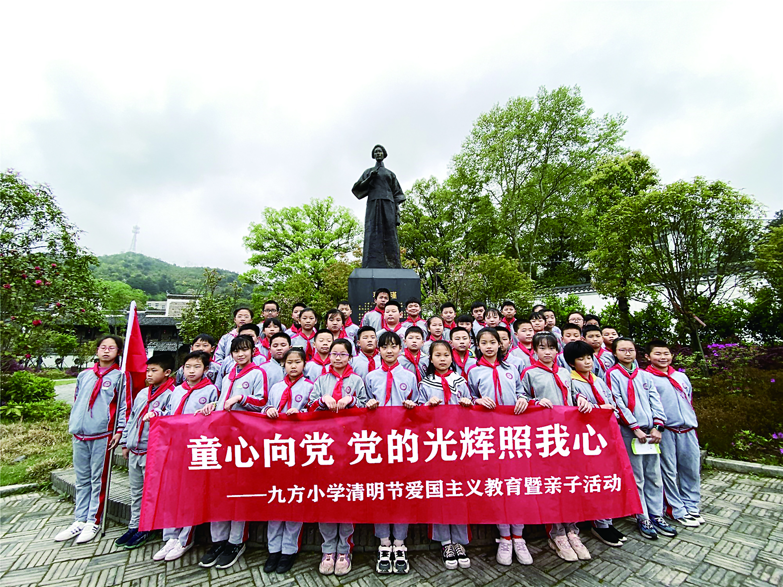 为弘扬爱国主义精神,进一步培养学生爱党、爱国情操,引导他们从小听党话、感党恩、跟党走,厚植爱党、爱国、爱社会主义情怀,4月1日下午,九方小学组织五(7)班全体学生和家长代表到秋瑾故居开展“童心向党 党的光辉照我心”爱国主题教育暨亲子活动。