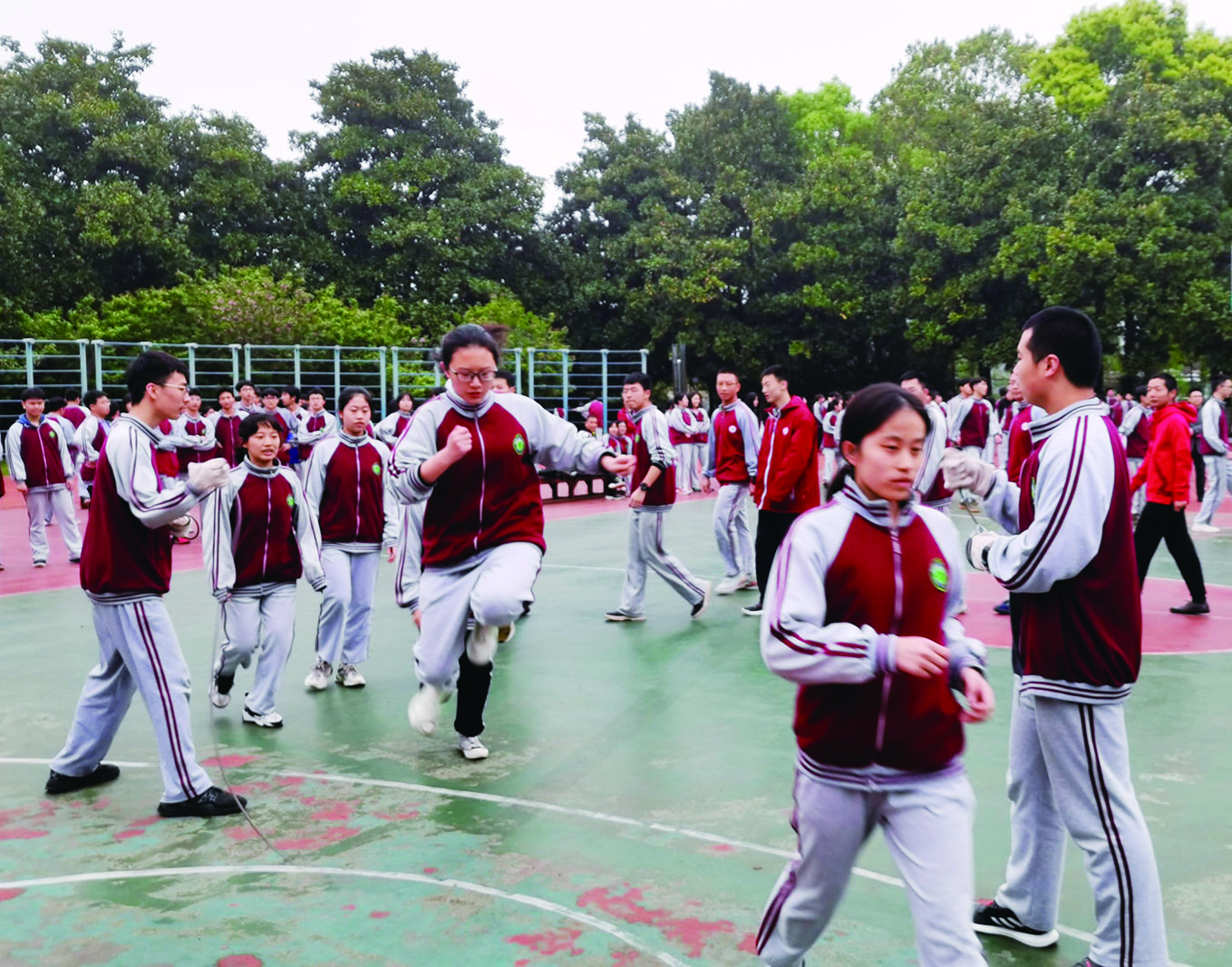 “1、2、3跳”……在南方中学运动场上,满是青春的气息。趁着难得的好天气,日前,该校举行了跳长绳比赛。拍击地面的摇绳声,紧凑的脚步声,高呼的助威声,热烈的欢呼声,交织成一首动听的乐曲。