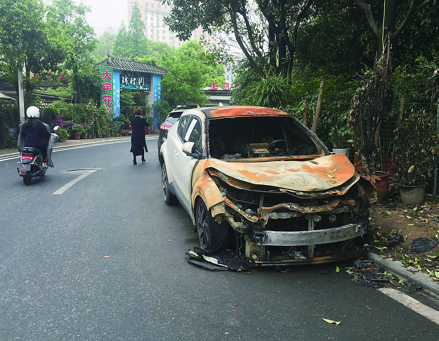 距离火灾事故发生已有上十天,但受损车辆仍停放在原地……4月15日,有市民反映,天元区滨江广场,一辆因火灾受损的车辆占道停放,引起市民担忧。