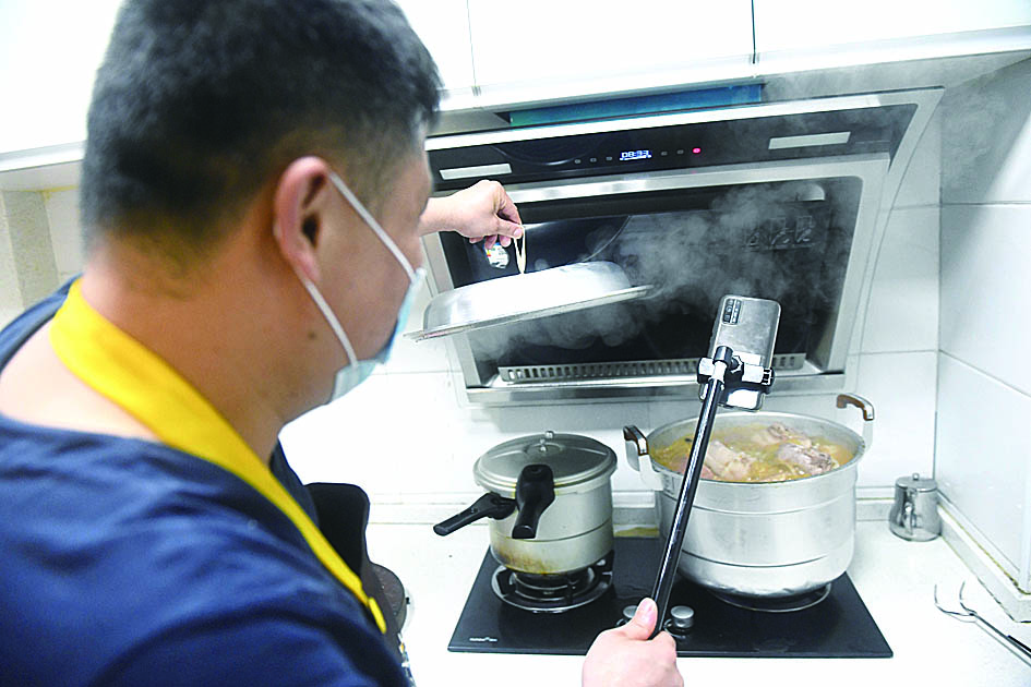 每天早上7点半,下楼买肉,传授选肉秘诀。回到厨房加工制作,讲解工序。中午12点后,开始给粉丝送货,并沿街叫卖,一直到晚上10点多才结束。这就是他的一天,观众全程“督工”。