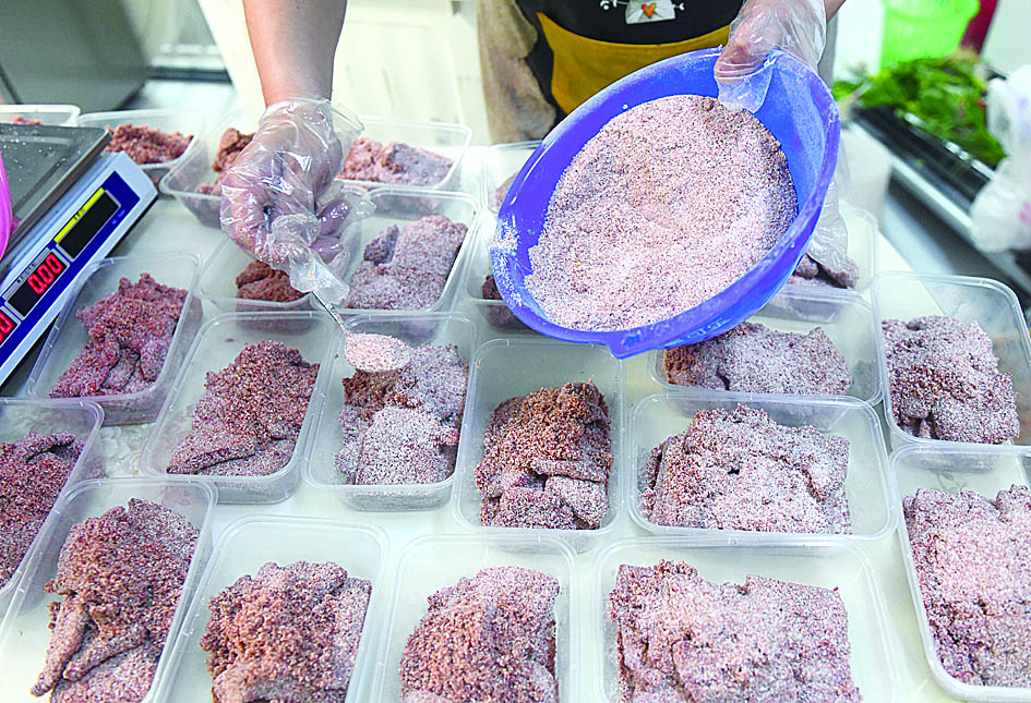 ▲粉蒸肉过好秤后,再额外添加一些粉