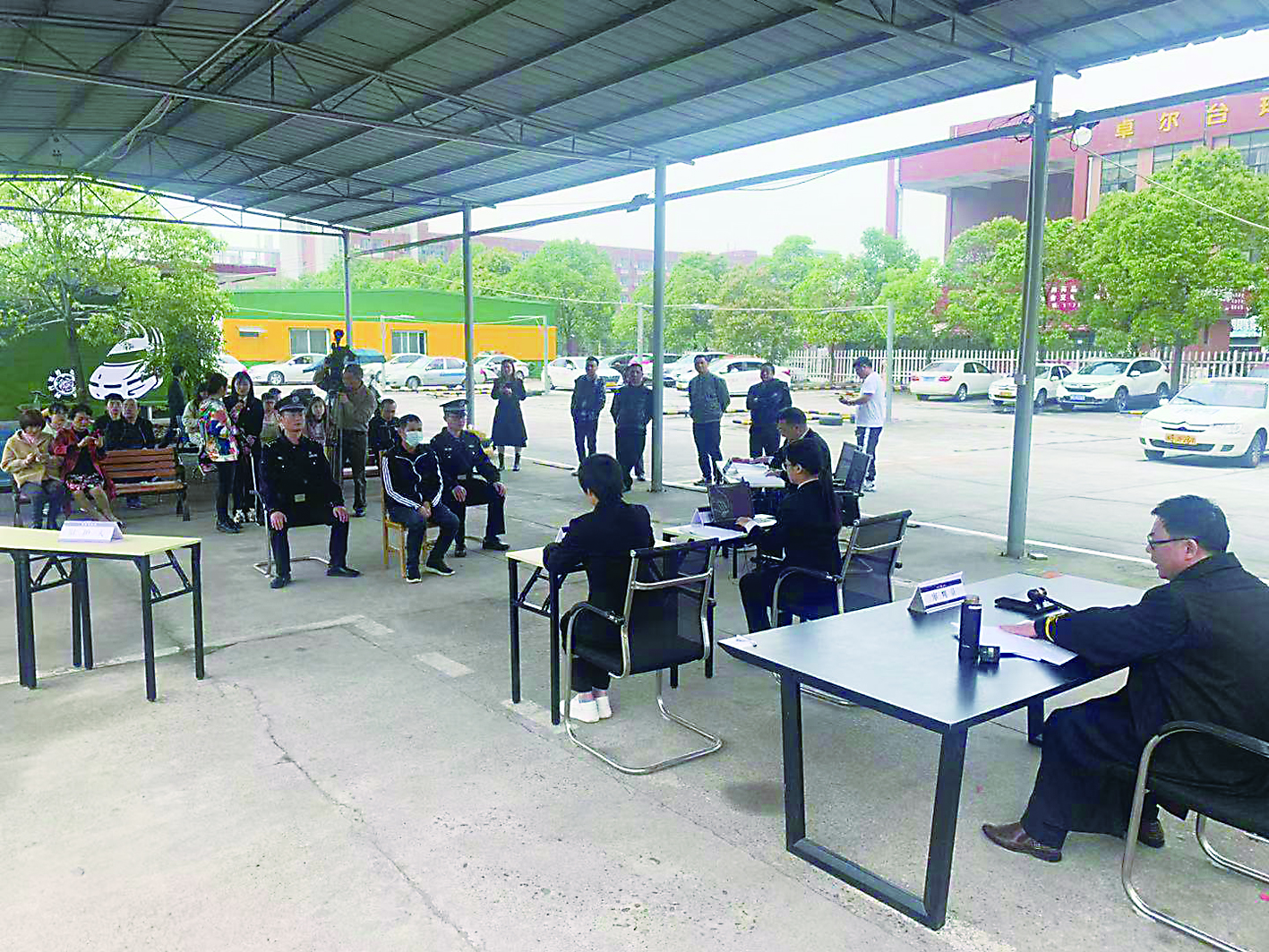 ▲庭审现场吸引了不少教练员、学员。 记者 贺天鸿 摄