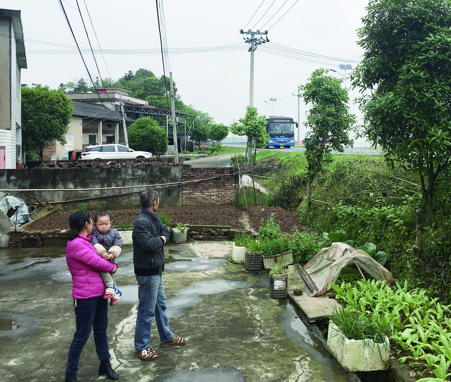 钱伟希等10余户居民的住房沿着008县道一字排开,紧挨路边。但路面与居民家前坪地面存在落差,高出前坪地面有一米多,路边无护栏安装。