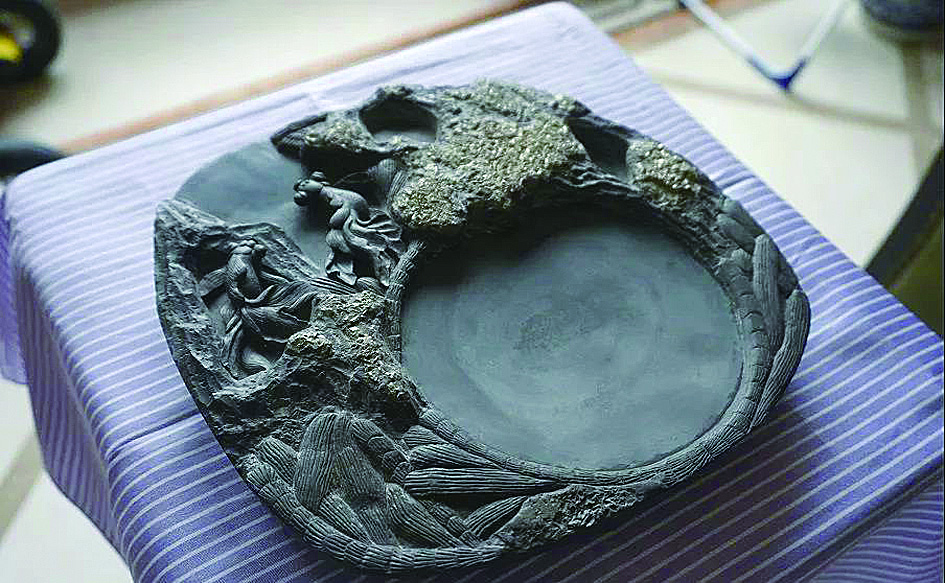 据历史记载,水冲石以产于吉首市乾州古城仙镇营北二、三里的水冲湾而得名。 水冲石是一种沉积页岩,形成于寒武纪,距今约五亿多年。此石色泽青灰,质细温润,不涸不燥,发墨快,不损毫,呵气即成潮汐,储墨经久不干,石层带有天然纹理、晶莹矿体闪烁其中,砚材采于水下尤其珍贵,以此石所制之砚称“水冲石砚”或“水冲砚”。 该砚精美华贵,为其他名砚望尘莫及,于砚林中独树一帜。 乾州水冲石砚开发于明清时期,历来为朝廷贡品。至清末民初,当地著名画家杨味蔬乃选用其优质砚石材料,亲自进行设计,精雕人物典故、山水云彩、花鸟鱼虫、游龙走兽及名家诗词等,从而使水冲石砚集实用与艺术于一体,将水冲石砚雕刻工艺推向新高。 (本报综合)