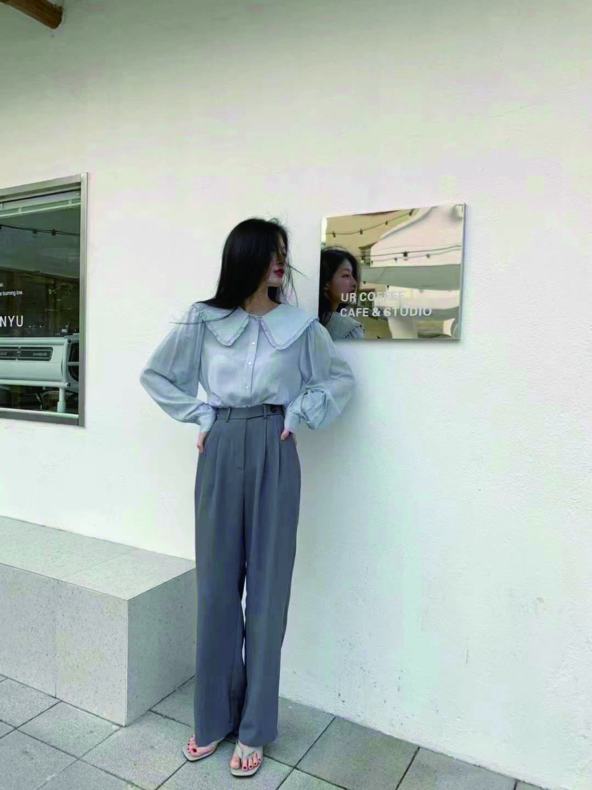 娃娃领衬衣+长裤