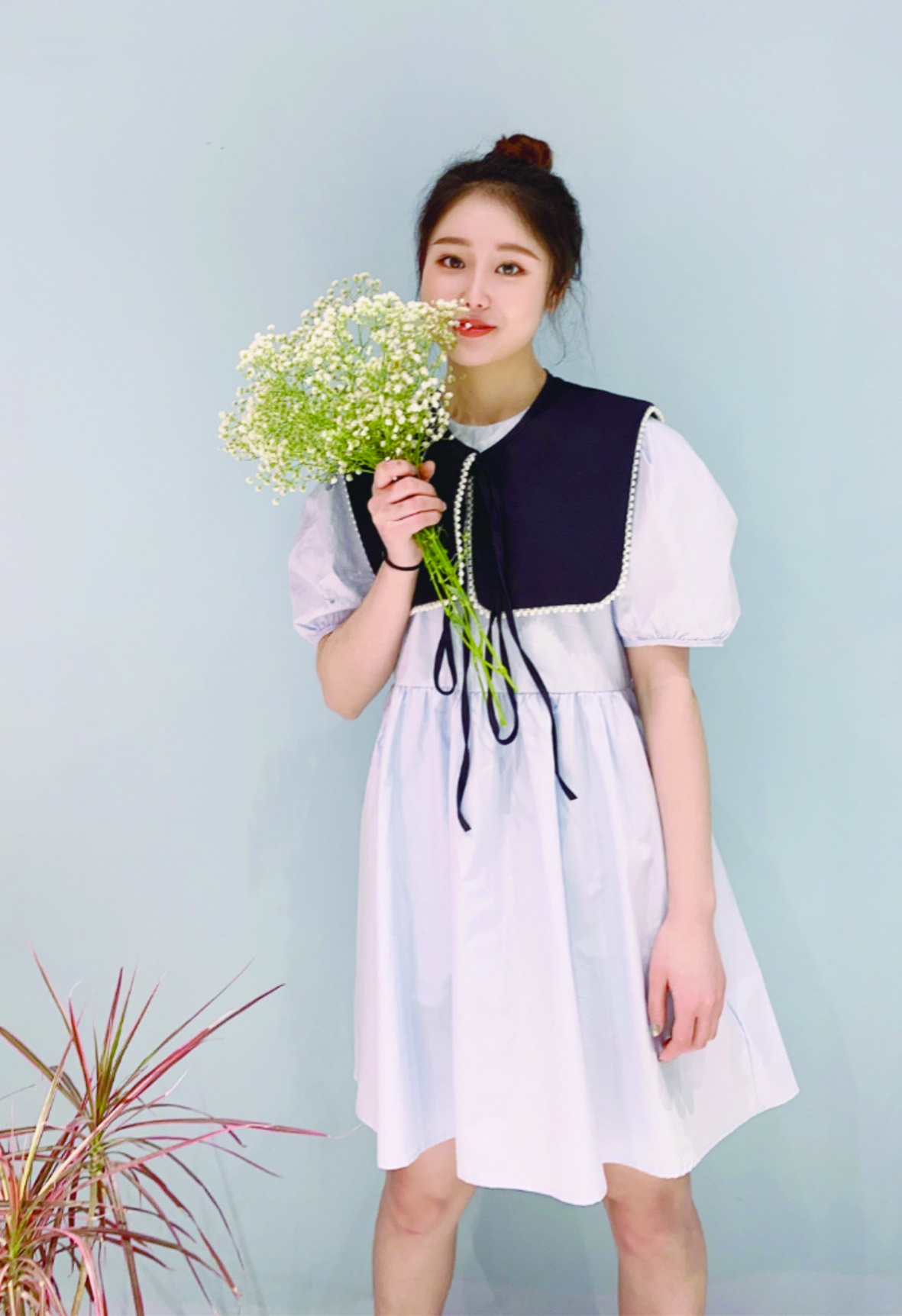 但娃娃领的风格偏可爱,许多人一开始其实没那么喜欢。不过反复试了好几件后,我们发现其实它并不是一味的可爱,细节不同风格也不同。