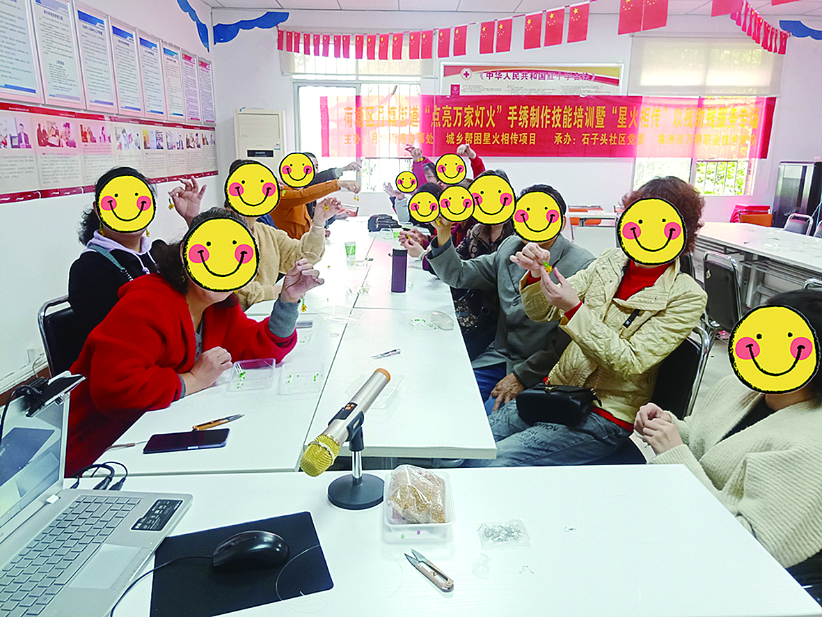 本报讯(株洲晚报融媒体通讯员 刘慧群)4月20日,荷塘区月塘街道“点亮万家灯火”手绣制作技能培训暨“星火相传”以残助残服务专场在石子头社区开班。活动邀请“星火相传”项目服务对象姚淑静为辖区残疾人士及其他服务对象讲授手工串珠制作知识。