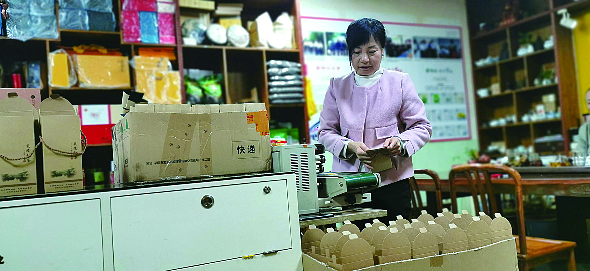 ▲茶叶店内,工作人员忙着打包。 王军 摄