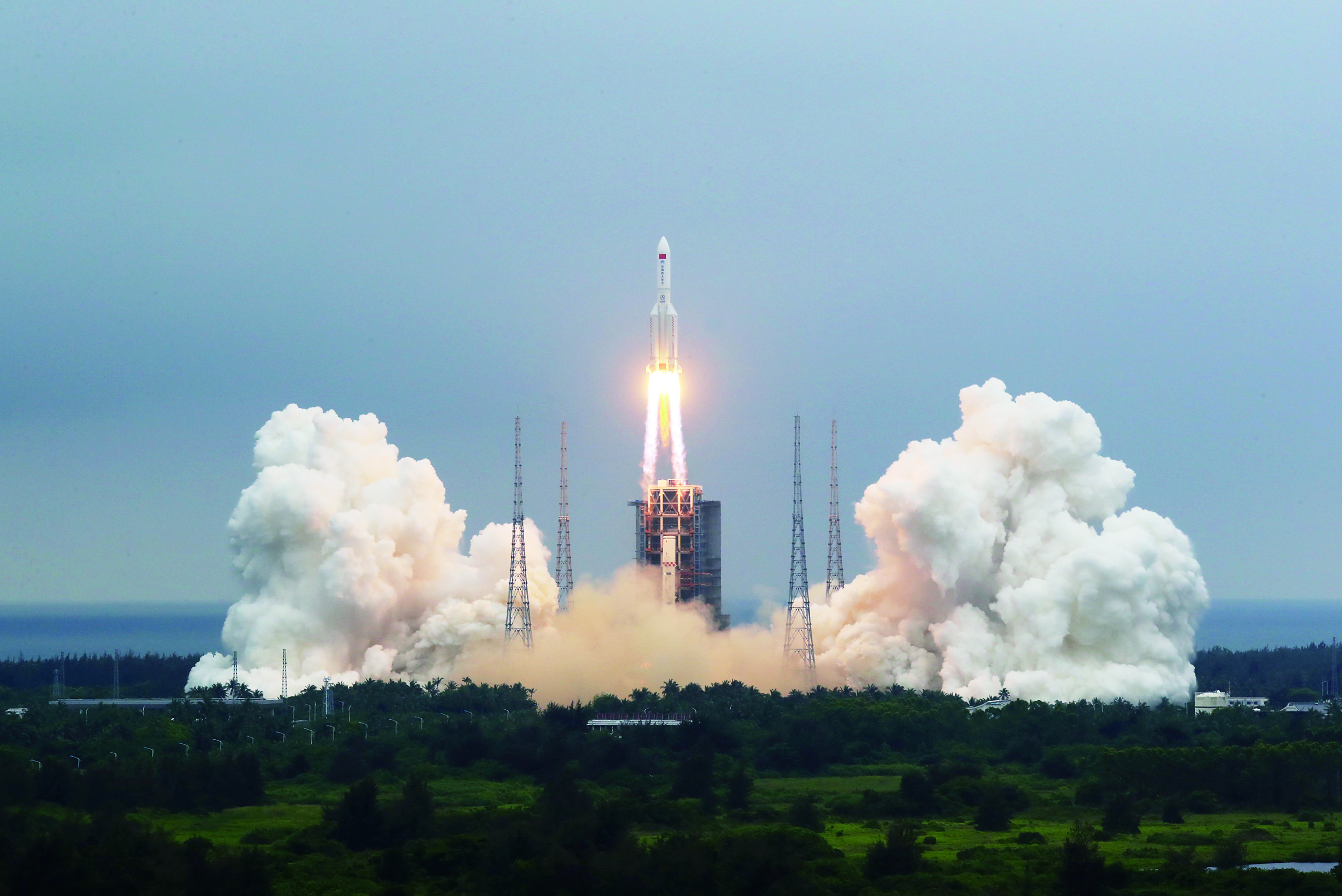 ▲4月29日11时23分,中国空间站天和核心舱在我国文昌航天发射场发射升空,准确进入预定轨道,任务取得成功。 新华社记者 琚振华 摄