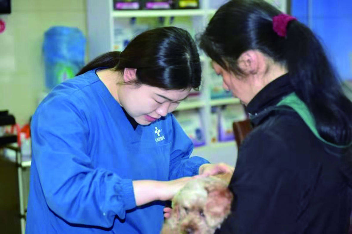 ▲市民携带爱犬前往办证点诊治。记者 沈全华 摄