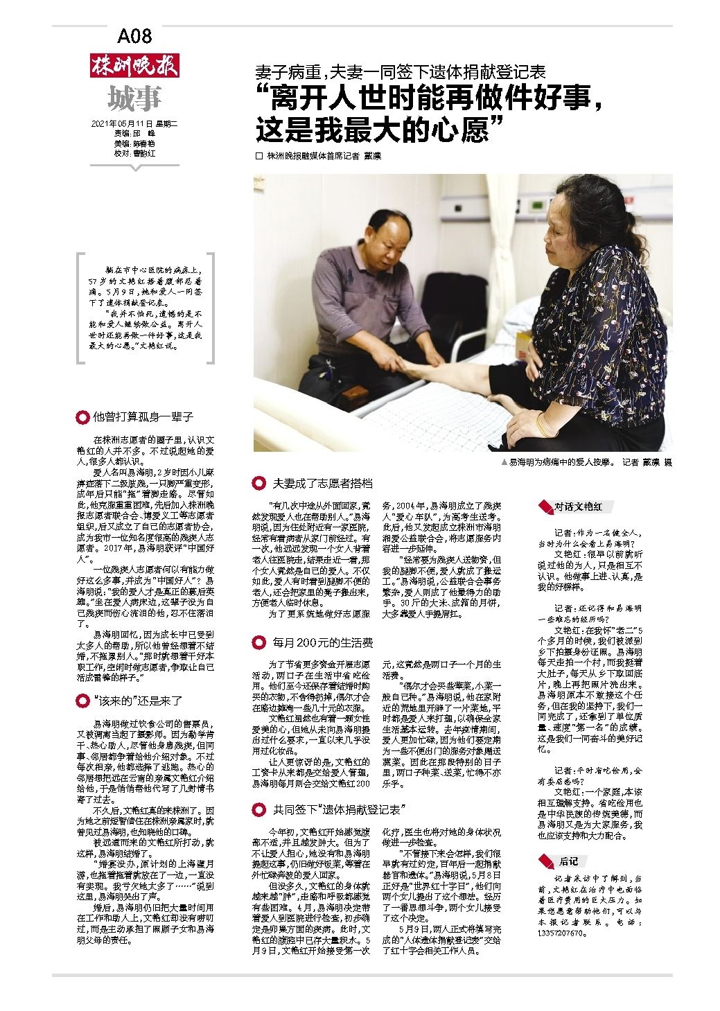 “离开人世时能再做件好事, 这是我最大的心愿”