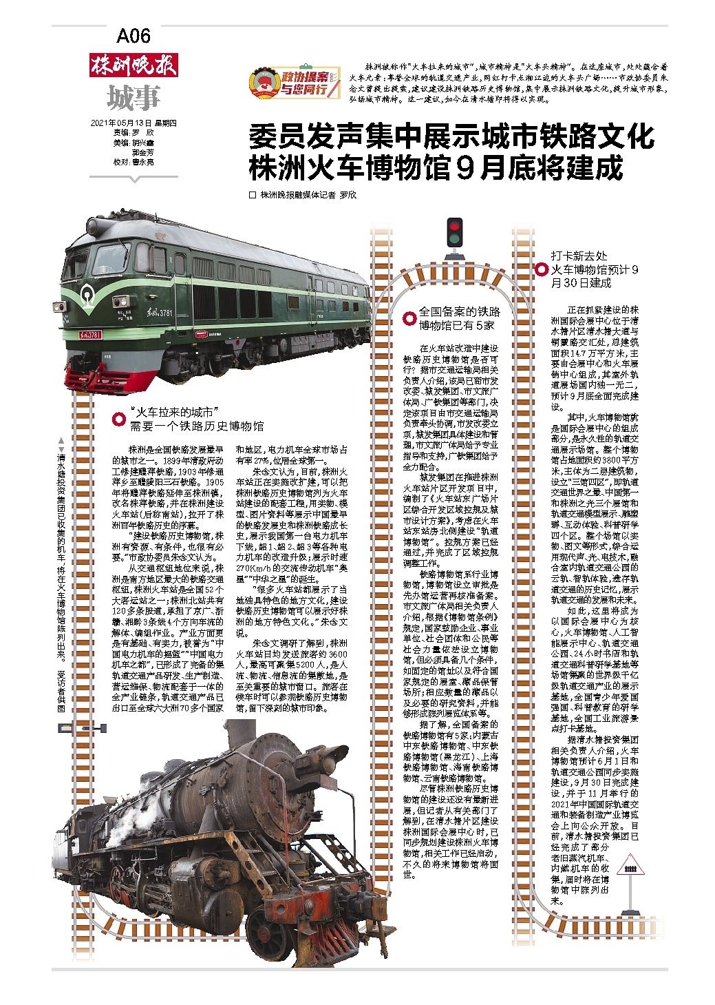 委员发声集中展示城市铁路文化 株洲火车博物馆9月底将建成
