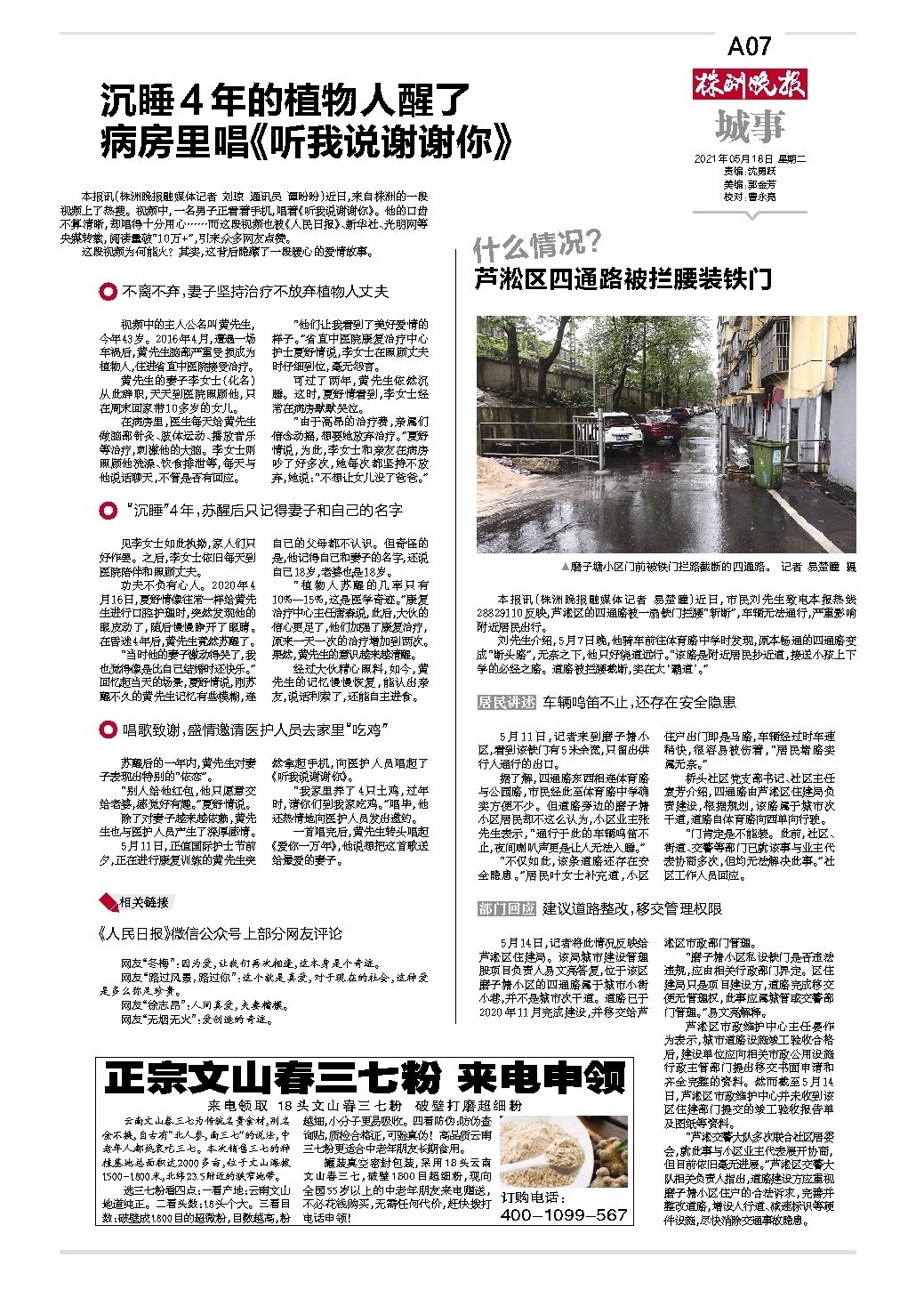 沉睡4年的植物人醒了 病房里唱《听我说谢谢你》