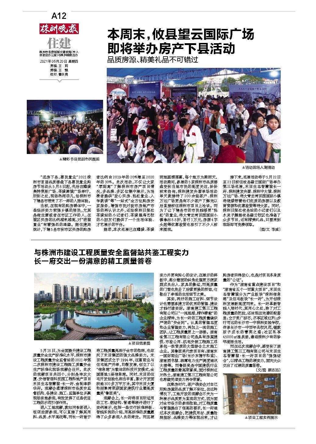 与株洲市建设工程质量安全监督站共鉴工程实力 长一府交出一份满意的精工质量答卷