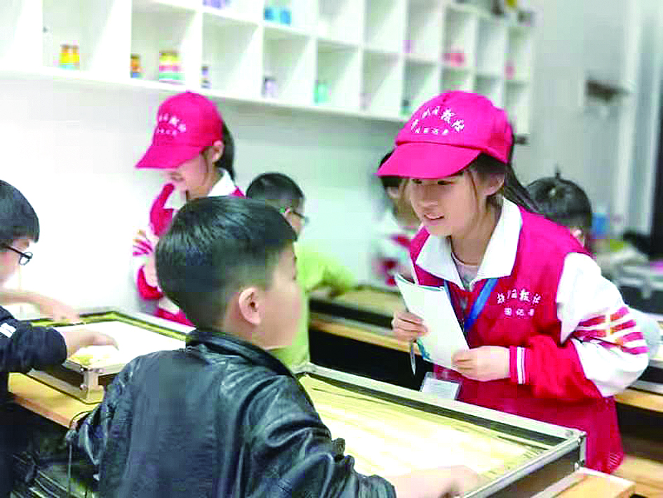 “小朋友请问你们今天上了什么课?喜欢我们的课程吗?”校园记者李沁沙声音清脆,笑眯眯地跟小朋友聊天,有的孩子抢着回答:“喜欢手工课,老师教我们做小动物的帽子,戴上帽子,我觉得自己就是一个小动物了,非常有趣”;有的大声回答,“我最喜欢沙画课,可以画不同的图案,以前画画都是在纸上,今天是在沙画台上画的”。