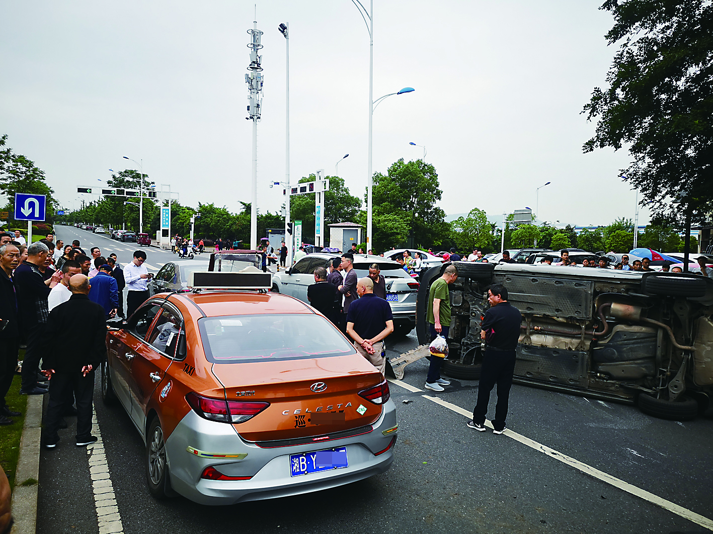 ▲车祸现场有一辆车侧翻。 记者 成姣兰 摄