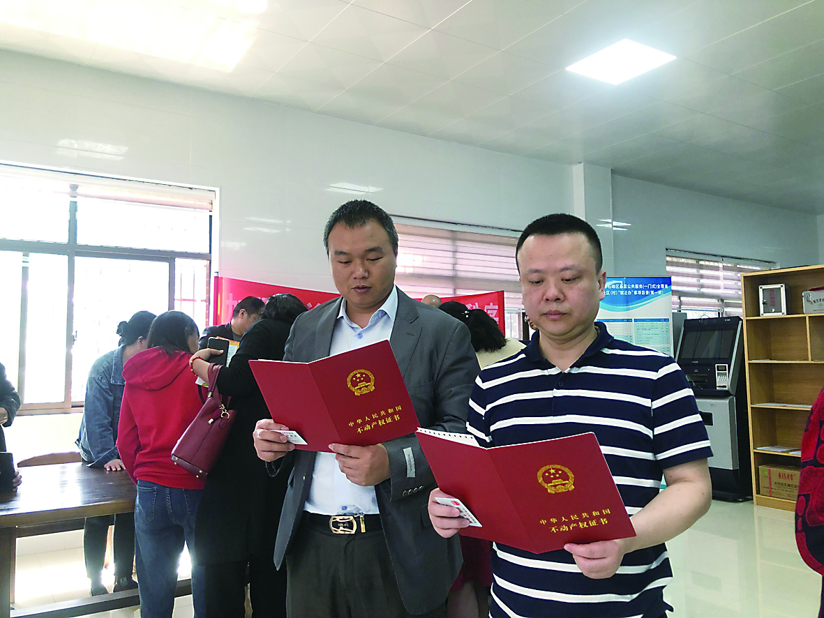 本报讯(株洲晚报融媒体记者 周蒿 通讯员 张媛 谭洪汀)“晚上睡觉更踏实了。”4月30日上午,石峰区大同雅苑的业主蒋永辉,从市不动产登记中心工作人员手上,拿到了期待已久的不动产权证书,连连道谢。当天,市不动产登记中心通过“上门服务”的方式,为大同雅苑86位业主发放了不动产权证书。
