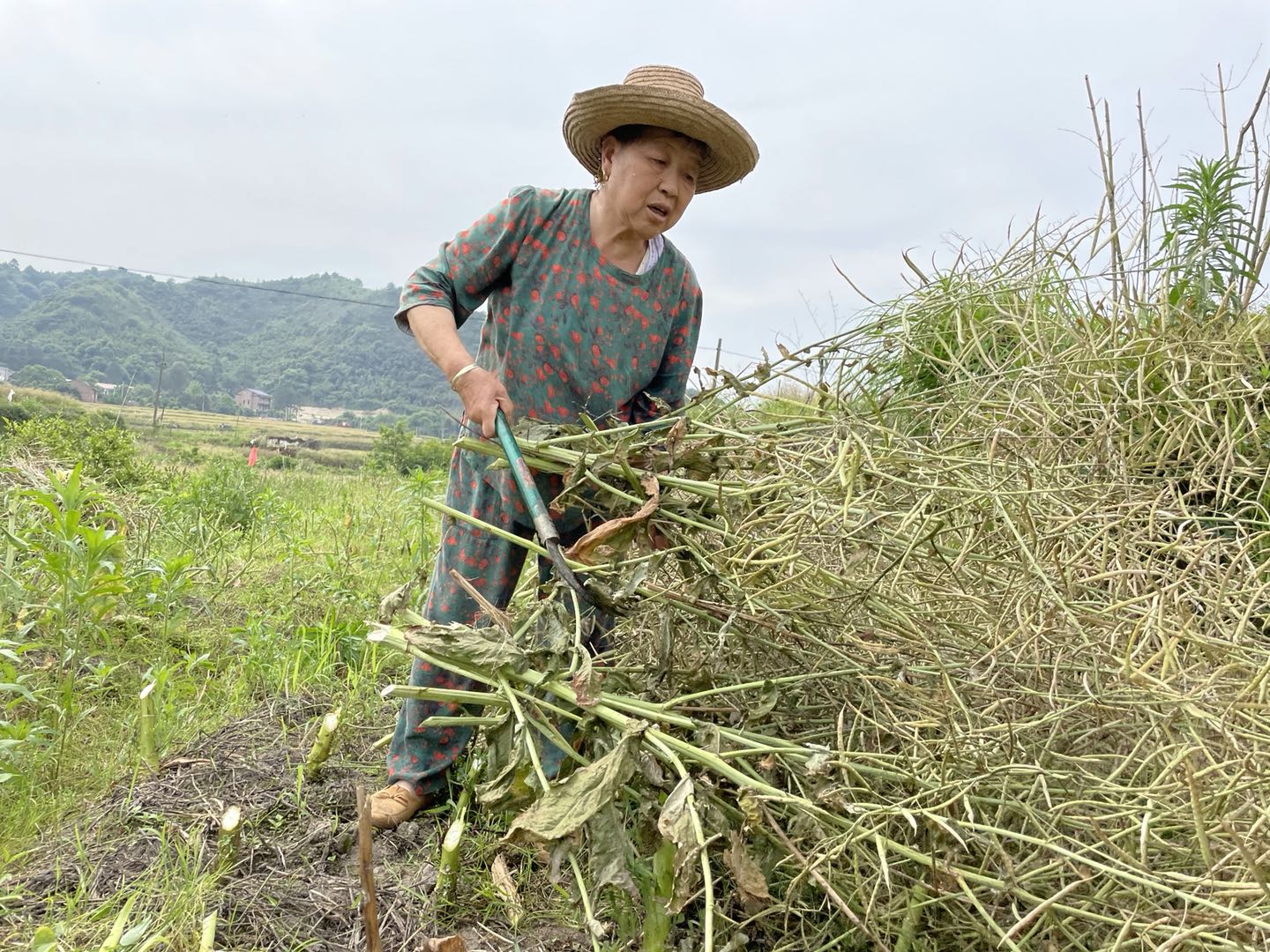 ▲立夏时节,我市油菜进入成熟收割季,农民们趁着晴好天气,纷纷抢收油菜。相比去年,今年三四月阴雨天气较多,油菜籽的产量受到影响。图为茶陵县火田镇贝水村的李奶奶忙着收割油菜。 株洲晚报融媒体记者 俞强年 摄