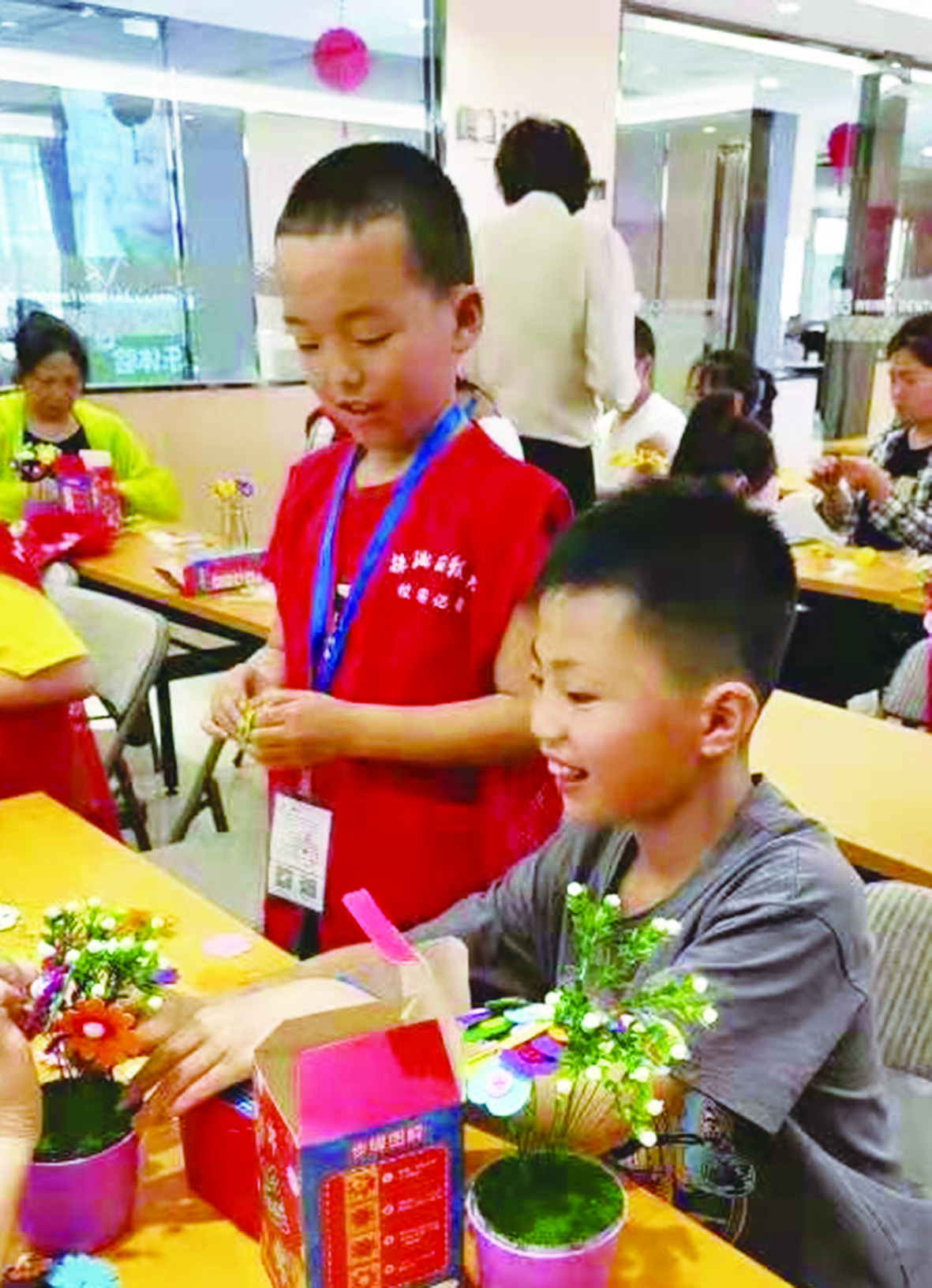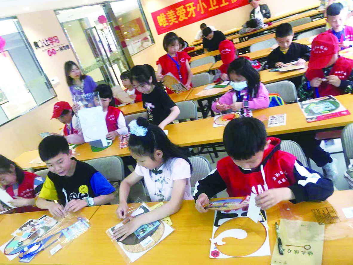 ▲孩子们的手工课堂。
