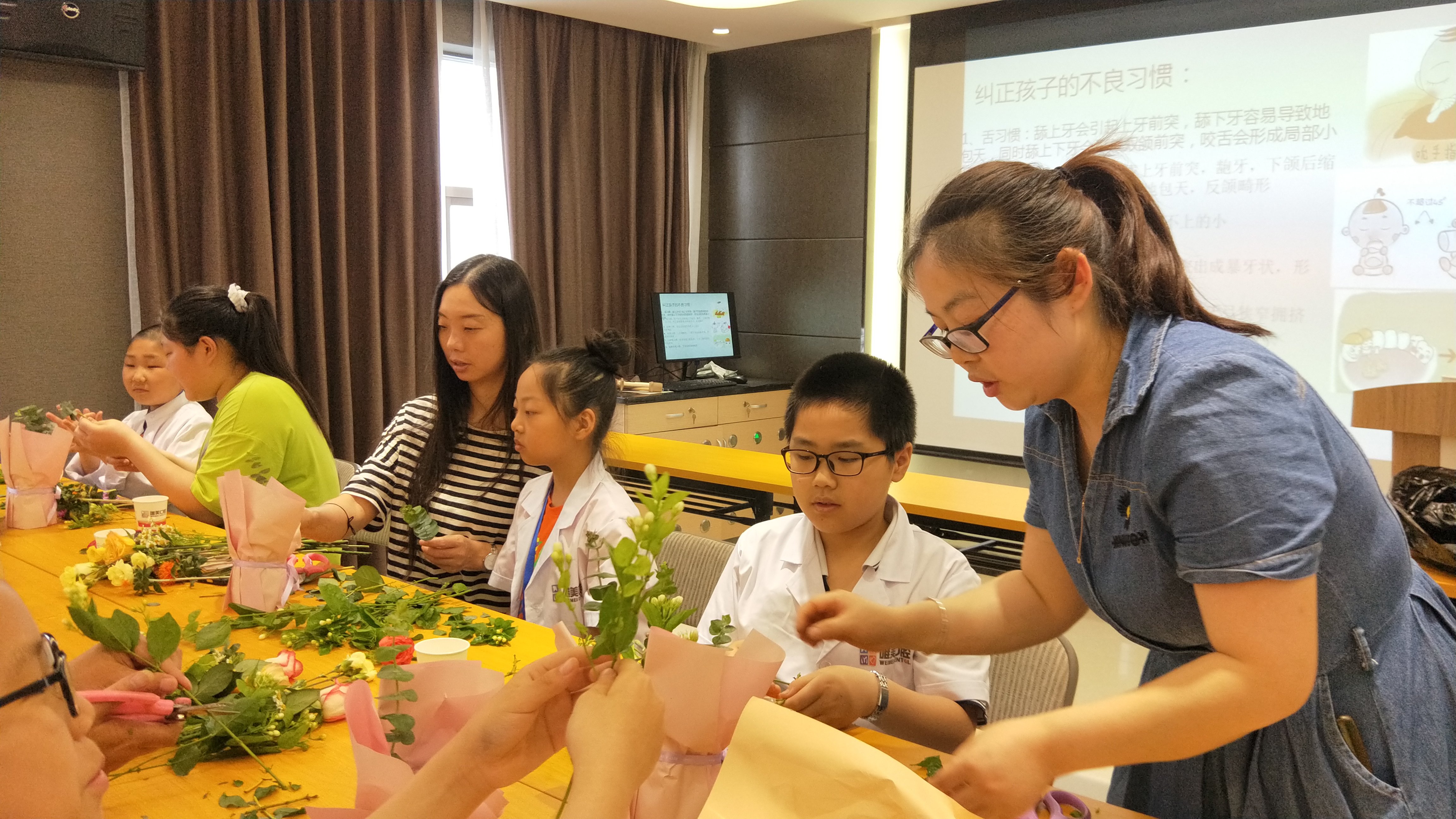手工制作活动让校园记者们收获满满。他们学习花艺,用双手、用心灵制作出一束束形态各异的鲜花,献给自己的妈妈,提前为妈妈送上最美的母亲节祝福。与此同时,校园记者还变身小牙医,给妈妈做牙科检查,希望妈妈开心并身体健康。