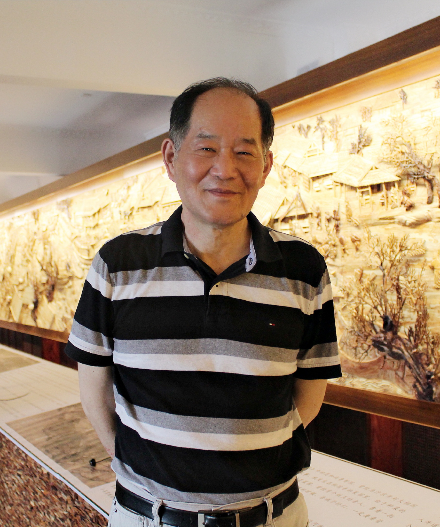 纪智,株洲人,32岁下海创业,40岁因为一份归属感回到株洲,创建聚典阁,从仅仅只是喜欢木头到发自肺腑对木作文化、木雕艺术的爱,将从商时那颗浮躁的心慢慢沉淀下来,用5年多的时间,组织了强大的工匠团队、历史文献研究专家团、志愿者等上百人,打造了集层雕、浮雕、镂空雕、透雕、禅雕等技法于一体的、世界独一无二的黄花梨木雕巨作《清明上河图》,获得了国家林业和草原局与中国农林水利气象工会全国委员会颁发的“第四届中国林业产业创新奖”。
