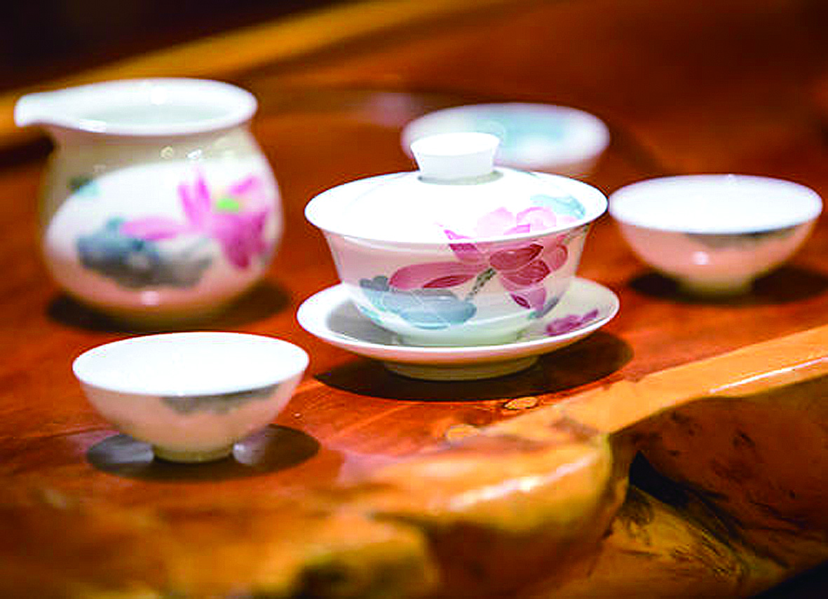 瓷器茶具最雍容典雅。它是由陶茶具发展而来,坯质致密透明,釉色丰富多彩,能更有效地衬托出茶汤的色泽。因为导热较慢、保暖适中,与茶不会发生化学反响,泡茶能获得较好的色香味。