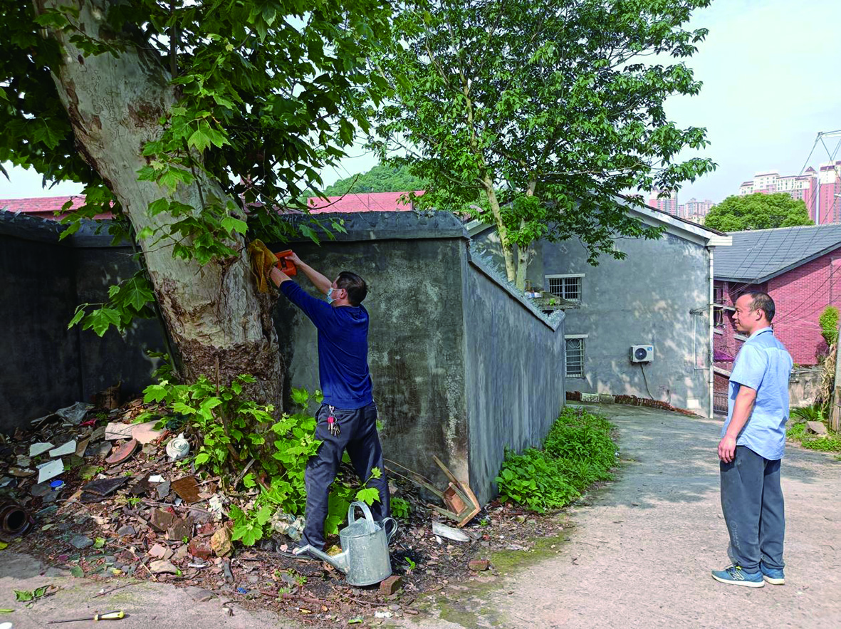 “@网格员,我们家旁的大梧桐树有白蚁窝,好多白蚁到处飞,大树要是倒了砸了房屋或行人更麻烦。”5月12日上午,醴陵车顿桥社区寨子岭居民陈女士,在社区微信聊天群里发了一则求助信息。