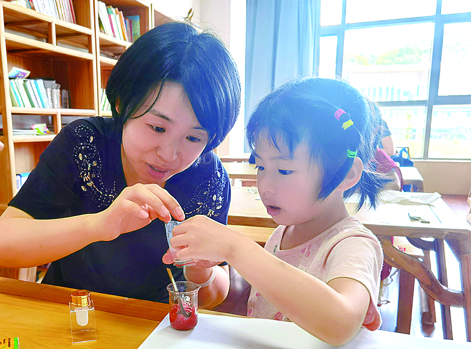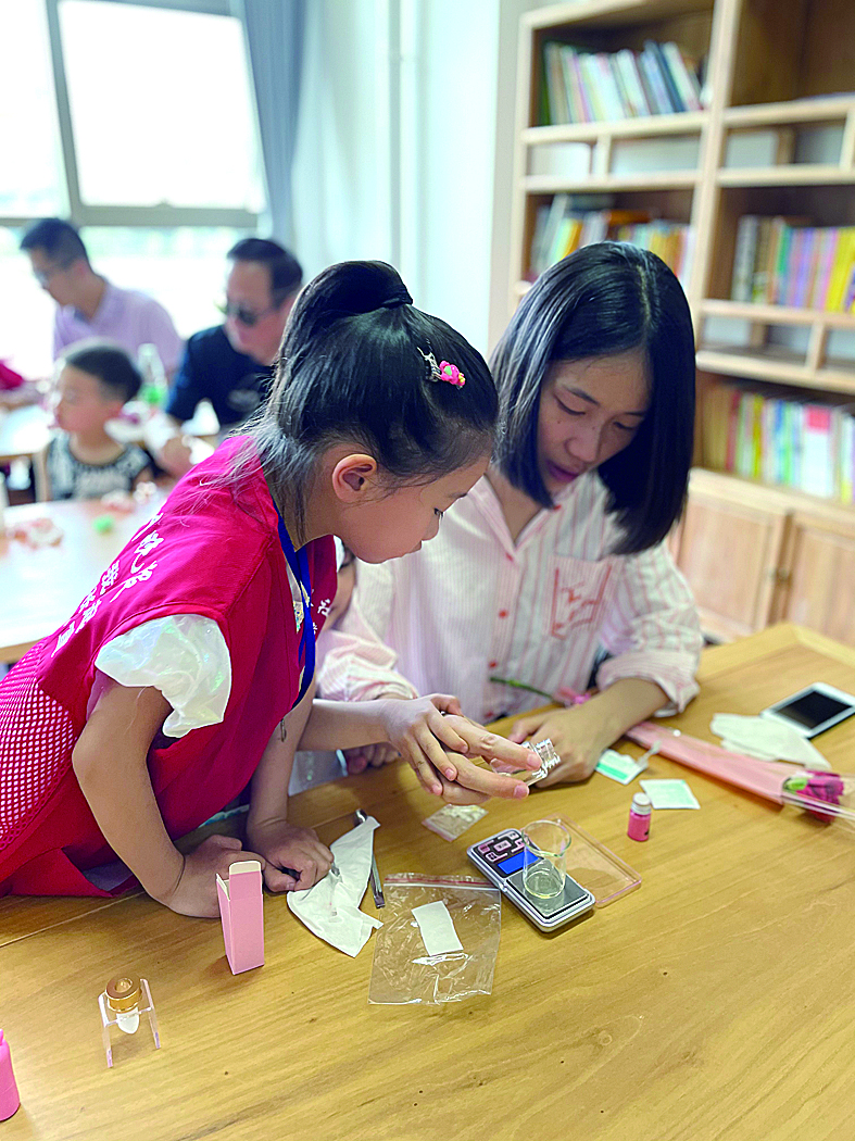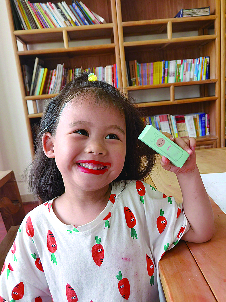 用酒精给烧杯、口红管、研磨刷消毒后,孩子们和爸爸妈妈一步一步小心翼翼地调配、加热搅拌、灌装、定型……在老师和爸爸妈妈的帮助下,每位天使记者都成功地制作了一支属于自己的口红。