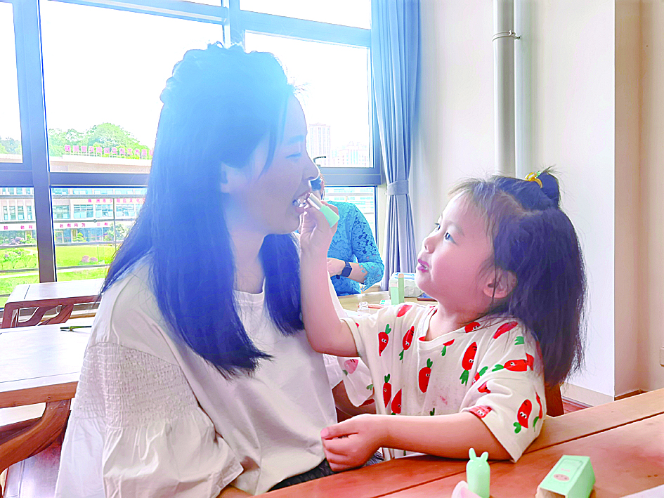“妈妈,现在我为您涂上口红,您就更加美丽了;妈妈,我非常爱您……”天使记者纷纷为妈妈涂上自己制作的口红,并大声向妈妈告白。