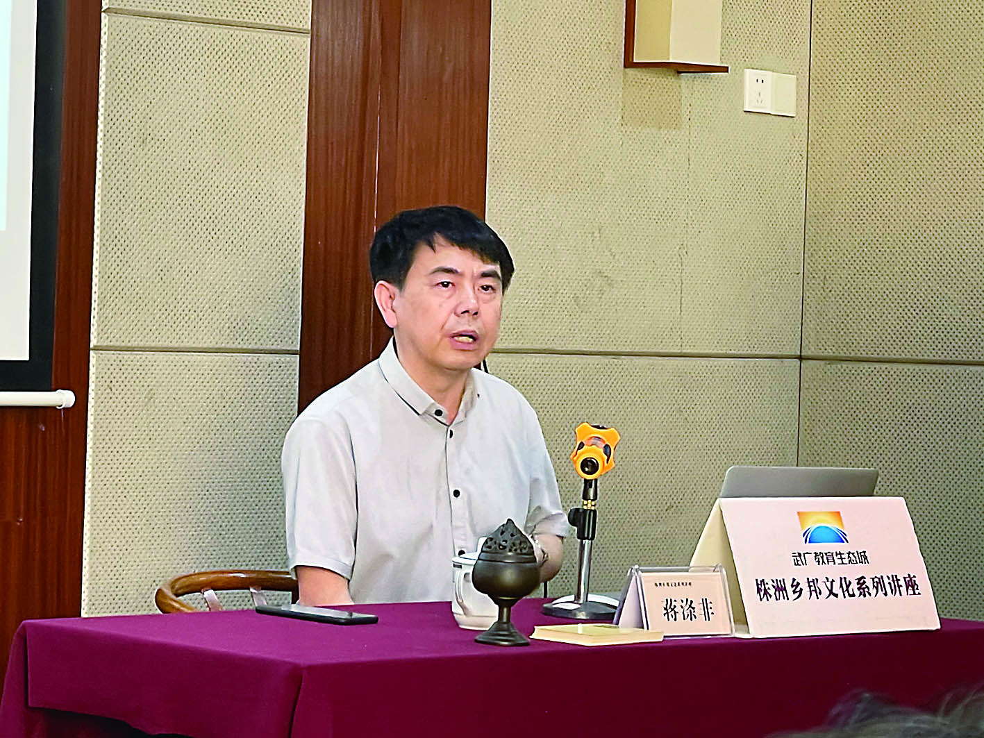 ▲蒋涤非回株洲参加“乡邦文化系列讲座”,讲述《株洲的“形”与“色”》。 记者 伍靖雯 摄