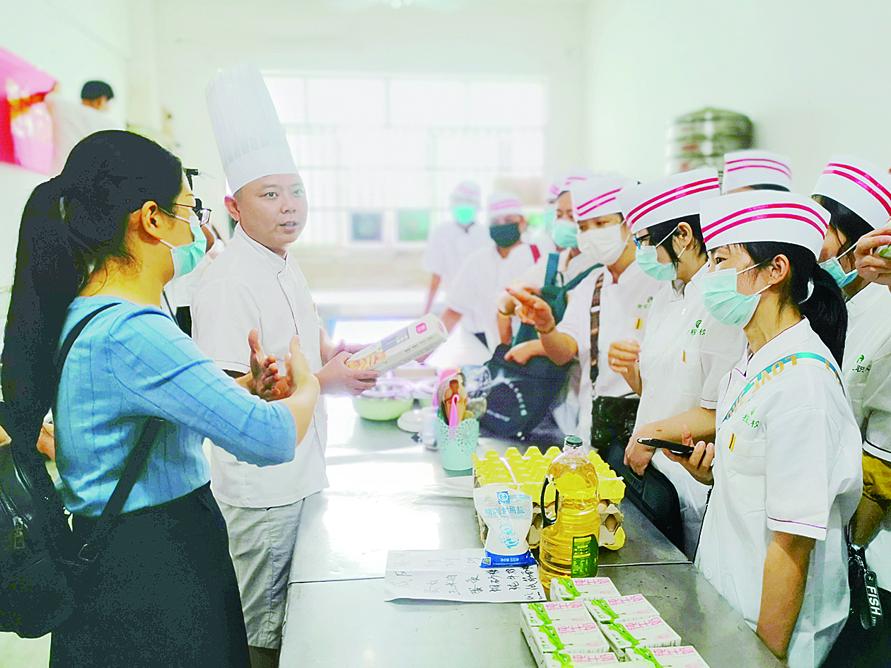 ▲特校学生体验面点制作技能。 记者 戴凛 摄