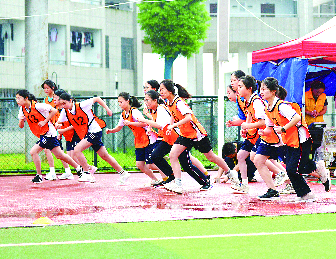 “预备……啪!”信号枪响起,小廖大步向前跑去,第一圈下来,他已处于领先位置。突然,他感到脸上、手臂上一股凉意,豆大的雨点落下。摆动双臂、保持速度、调整呼吸,小廖在心里给自己默默加了把劲。最后30米,他已分不清脸上是汗水还是雨水,大手一抹开始加速,向着终点的绿色感应带冲刺。