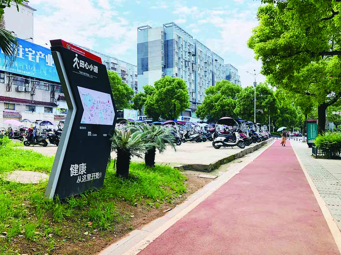 “游步道的软硬、排水都是有考究的。”石峰区住建局相关负责人介绍,考虑到田心片区有不少老年人居住,防滑和排水尤为重要,所以小路改造时,未采用传统户外训练场的软质地面,而是选用硬度适中、排水性更佳的改性环氧树脂陶瓷颗粒砂浆。