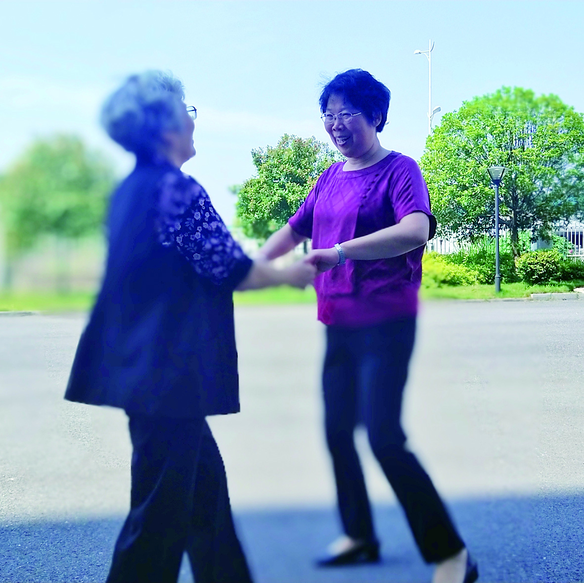 ▲笑一笑,十年少。图为市民陪老人聊天、跳舞,逗老人开心。 记者 何春林 摄