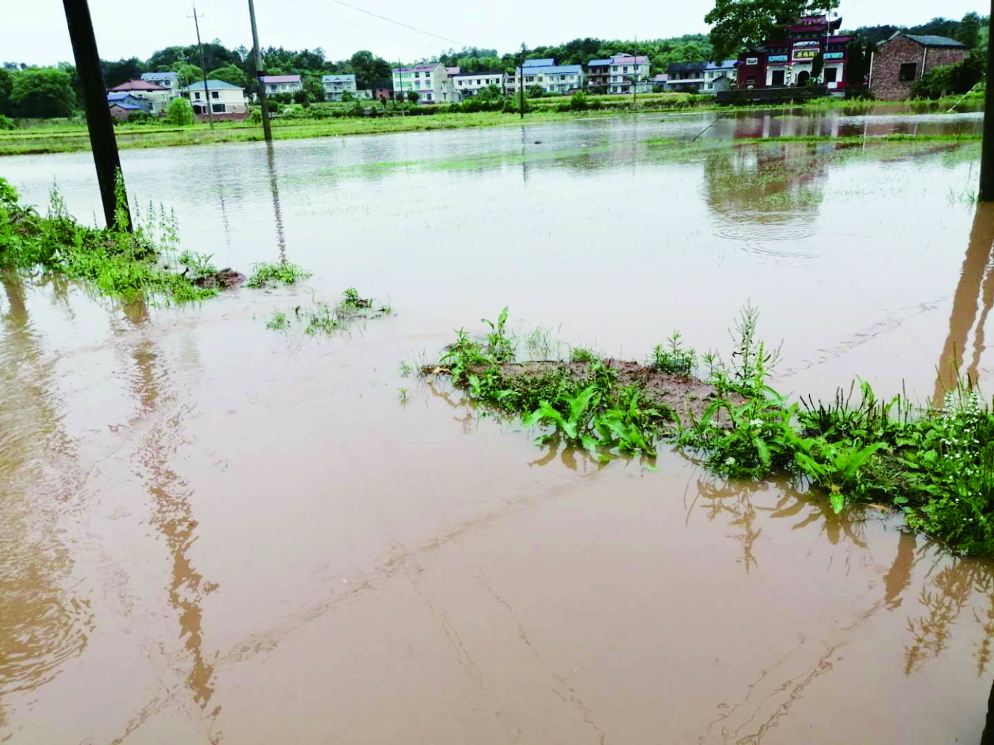 ▶低洼地带的农田,禾苗被淹没。 记者 王军 供图