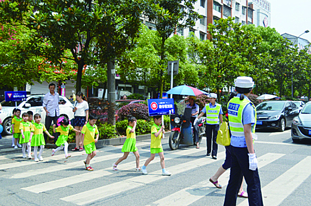 ▲交警护送幼儿安全过马路 图片来源:株洲文明网