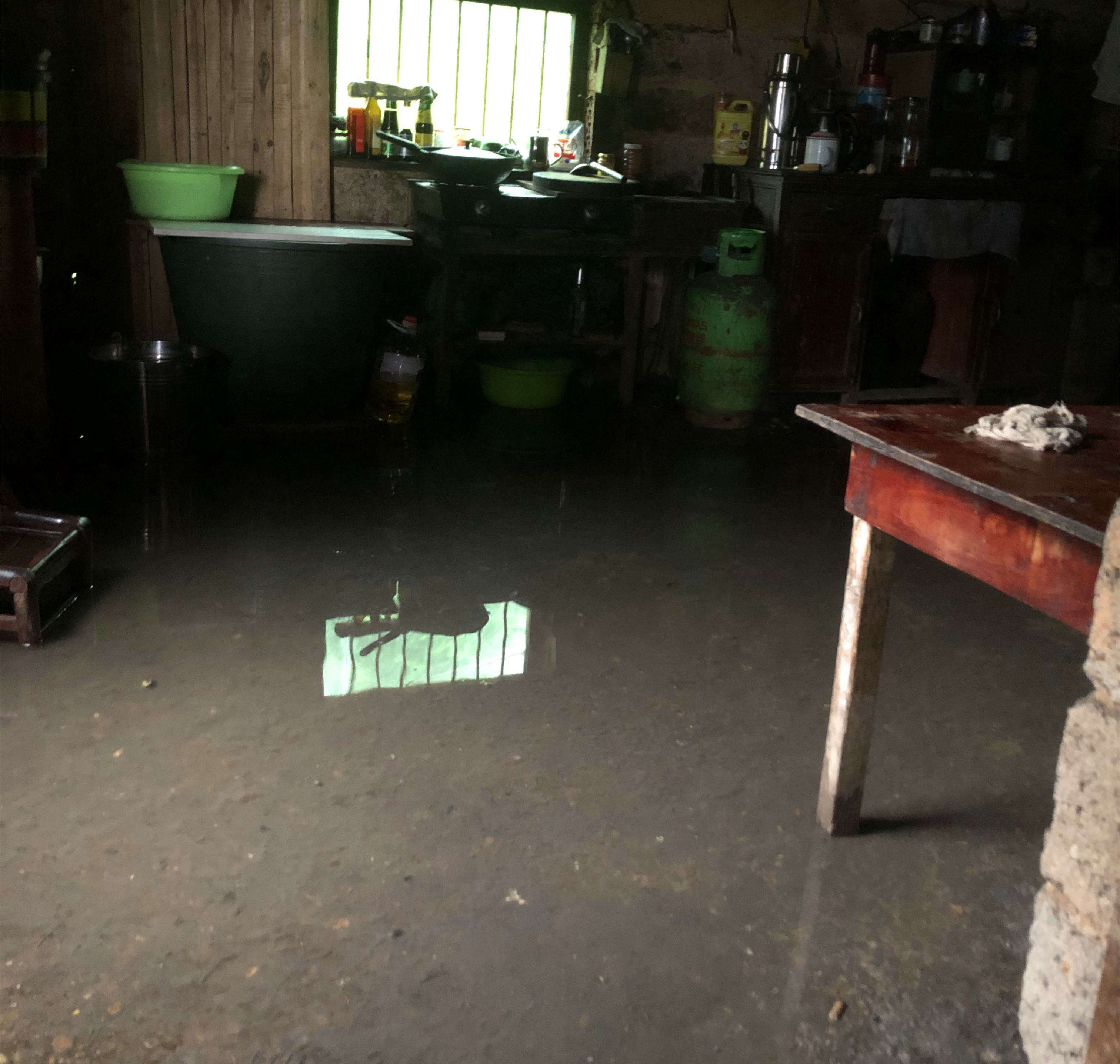 ▲19日上午,暴雨过后,雨水已漫进王爹爹家中。记者 易楚曈 摄