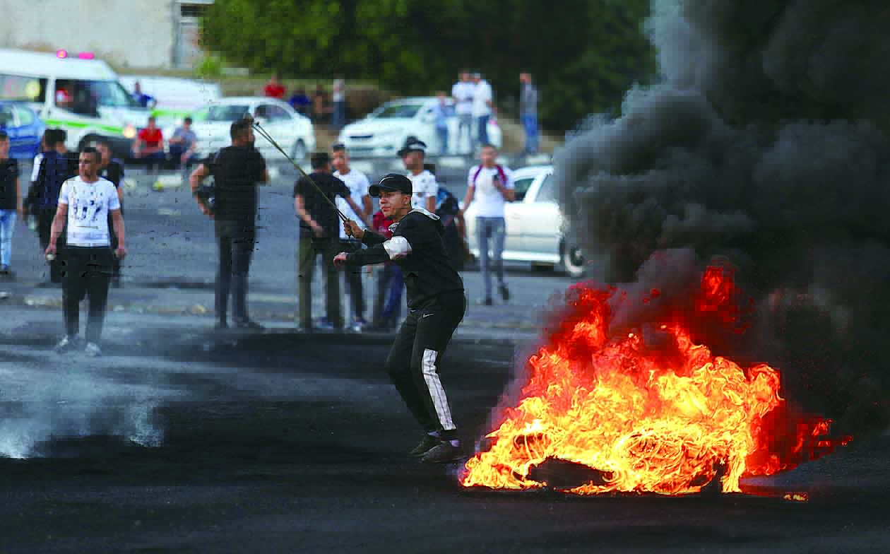 ▲5月19日,抗议者在约旦河西岸城市纳布卢斯附近参加示威活动。 新华社发(尼达勒 摄)