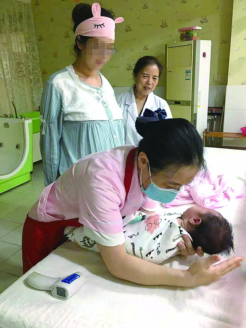 ◀株洲某月子中心的育婴师正在护理婴儿。 (受访者供图)