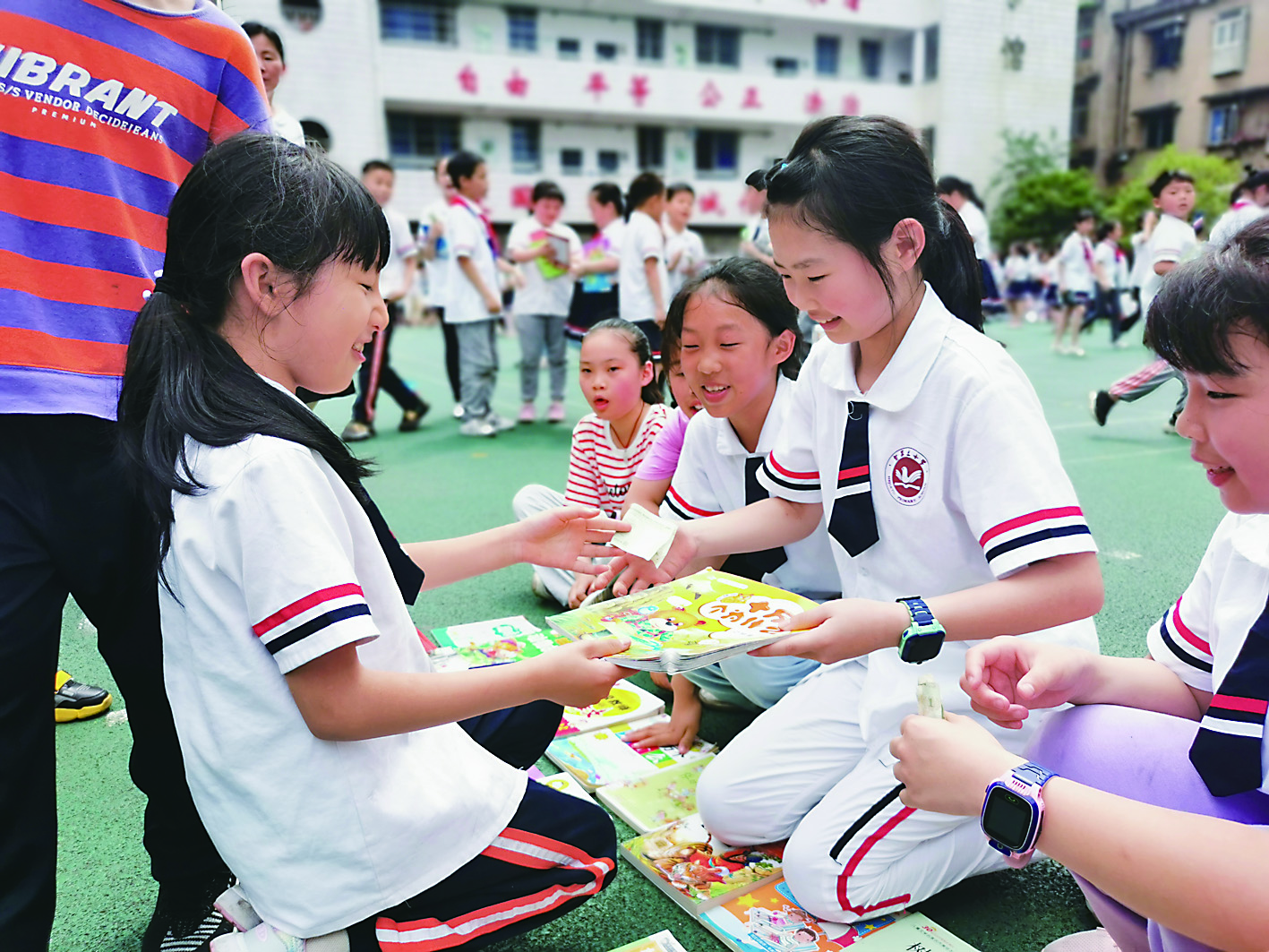 ▲“红领巾书市”交易红火。 刘燕 摄