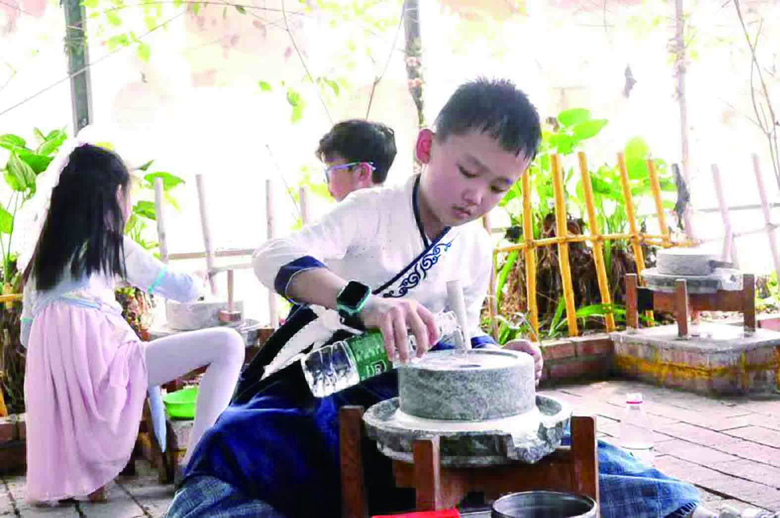 辅导老师阐释这次活动的意义:“中国自古便是礼仪之邦,拥有几千年的文明史。我们的活动主要是帮助学生了解、感受中国传统文化的魅力,大家在体验劳动的同时,还可以在礼仪课堂上学习中国传统文明礼仪,激发对中国传统文化的兴趣。”话音刚落,小伙伴们便急不可待地开始了“以物易物”销售活动。除了销售,我和小伙伴还体验了手工石磨豆浆、手绘油纸伞、古法农耕等其他劳动活动。