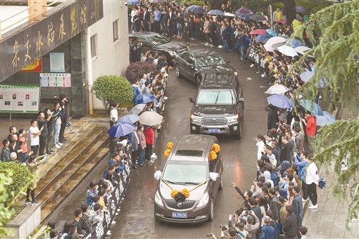 航拍镜头里,送别的群众队伍绵延了三公里。上午10时许,进入殡仪馆的路段已实行交通管制,前往殡仪馆悼念的民众已经超过5万人。