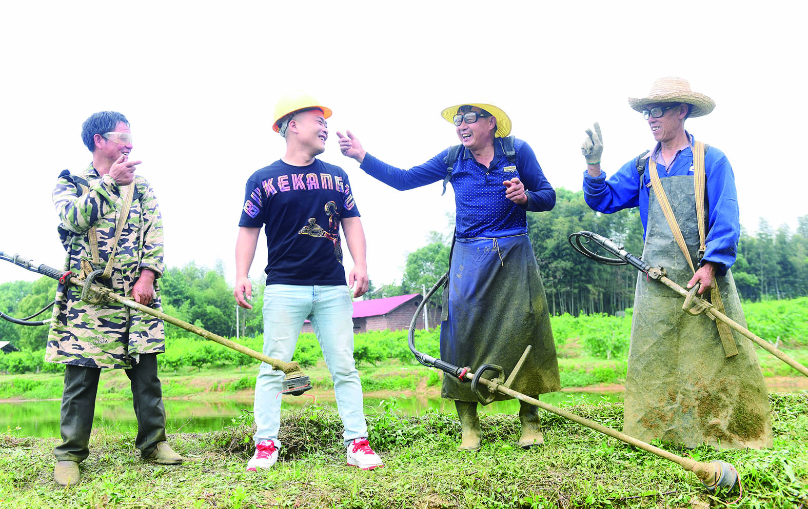 ▲吴争和除草的村民一起拍搞笑的段子。
